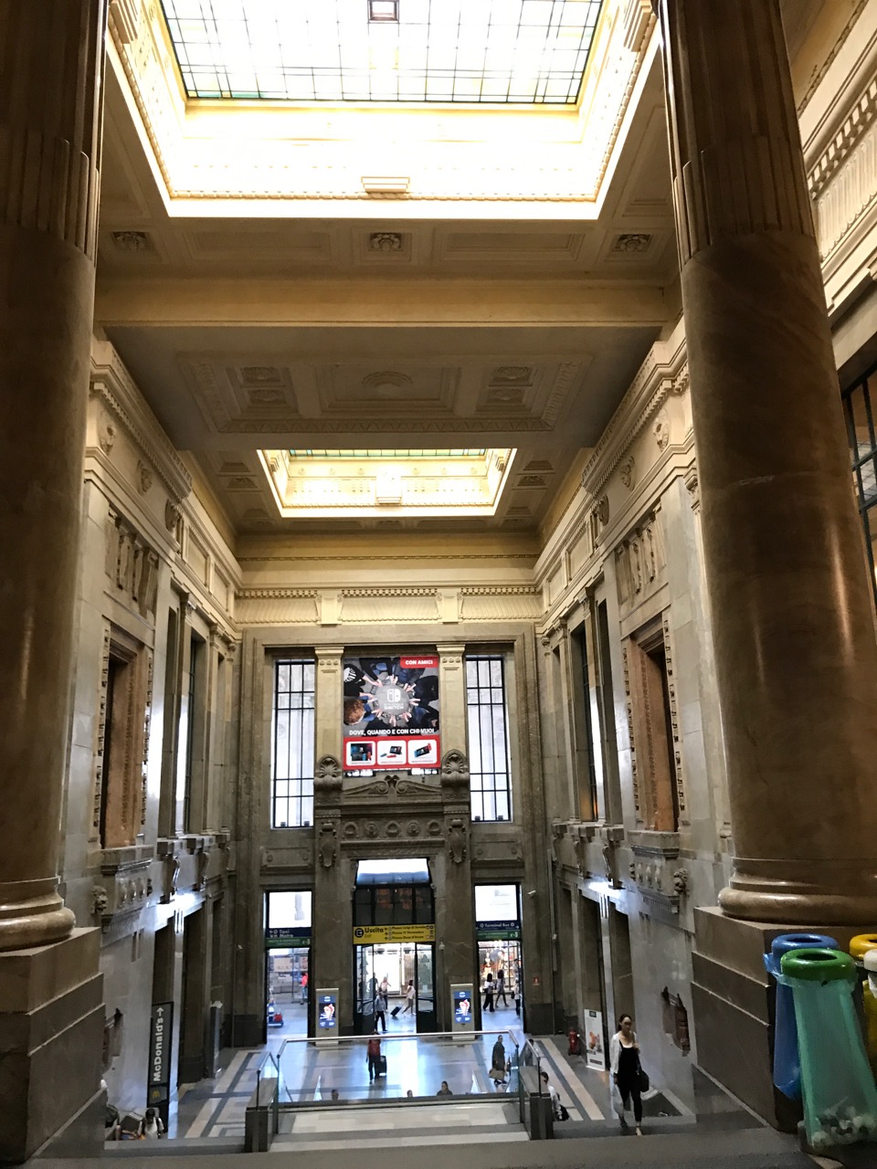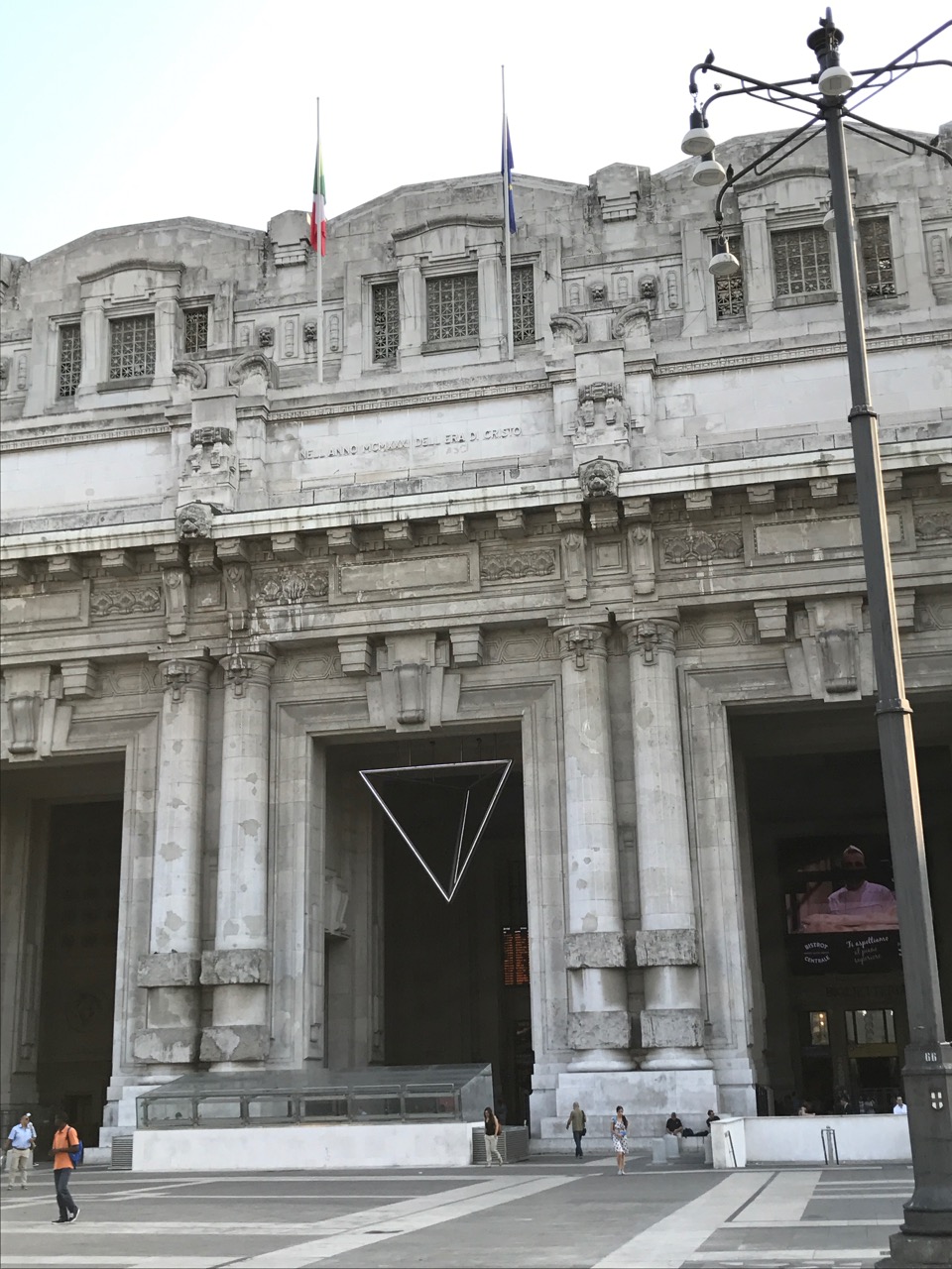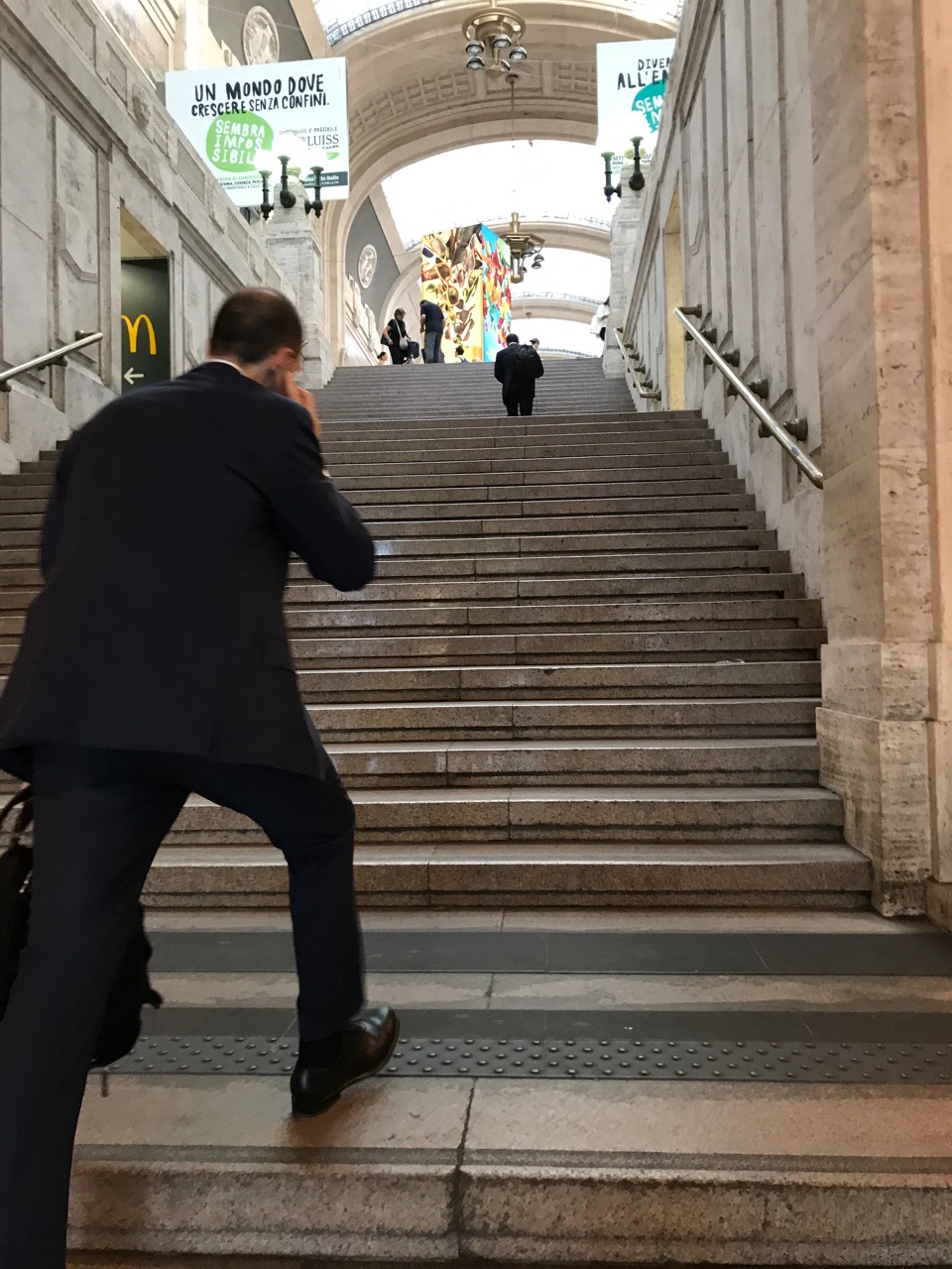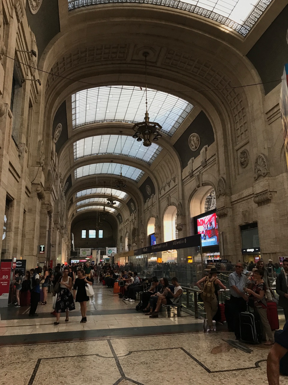 Because we missed our 7:40 a.m. bus, I was able to take a quick walk around Milan Central Station, which is just incredible. It’s kind of a pity that Omaha turned it’s station into a museum instead of having a bustling center for travelers. I know we don’t have much of an infrastructure for public transportation… but it’s so cool! Even the sidewalk outside of the station is made of tiny tiled brick in a beautiful pattern that looks like a continuous fountain. It must have been painstaking work for some bricklayer.