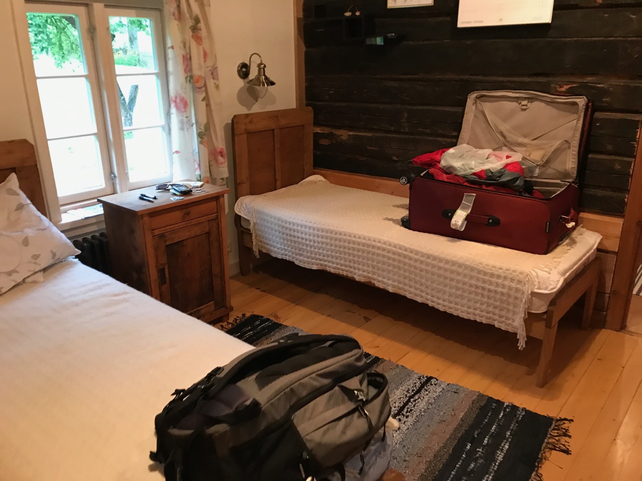 I moved my things into my new place. It is the old house which the original owners used as a sauna, and which Ansis and Monta turned into a guest house. It has three rooms: a kitchen, bedroom and bathroom. It is perfect for one person, like myself, who doesn’t want or need many things. I fear when my crate arrives from America that I will have trouble finding space for everything, especially my clothes, since there are no closets.