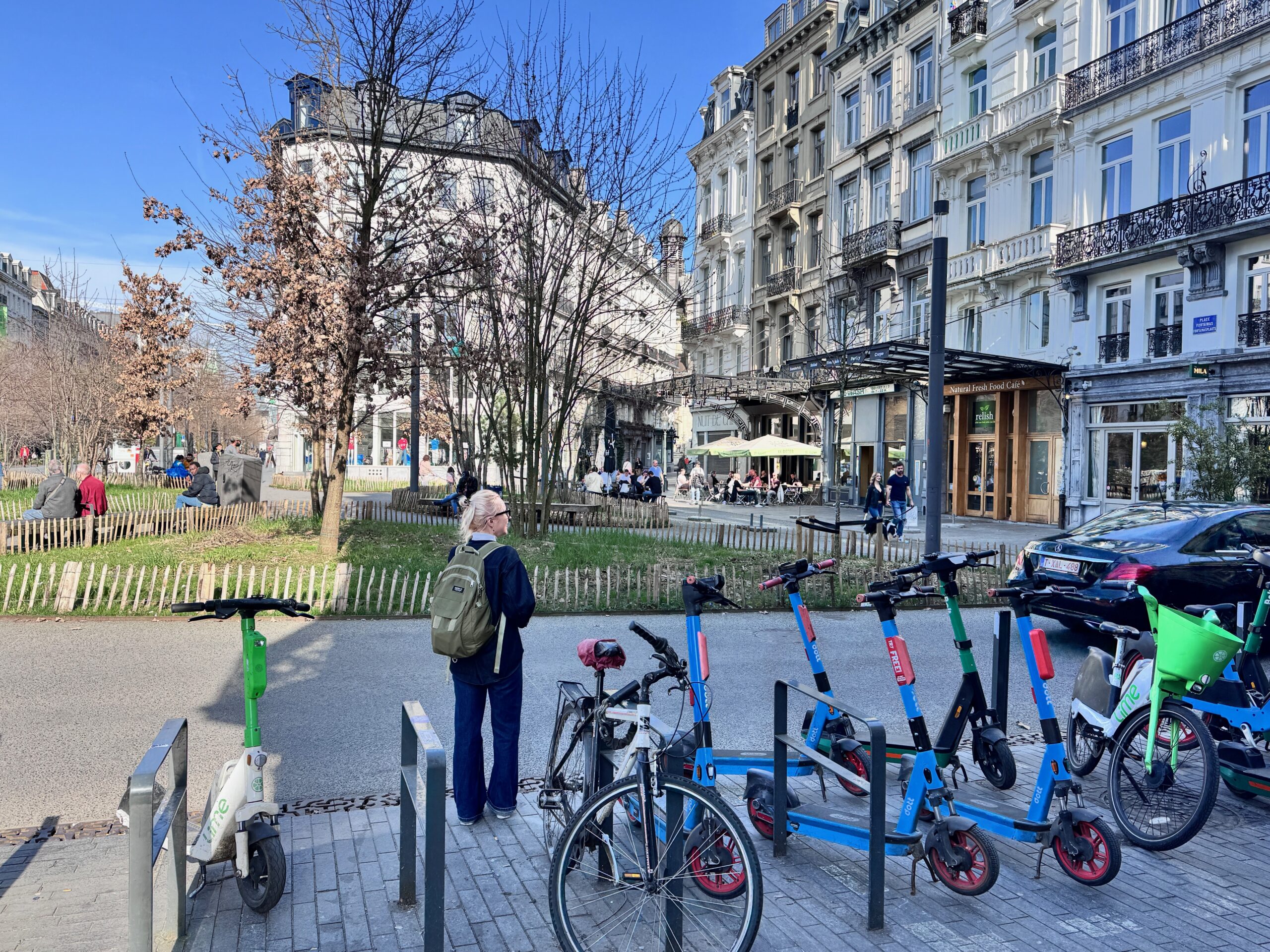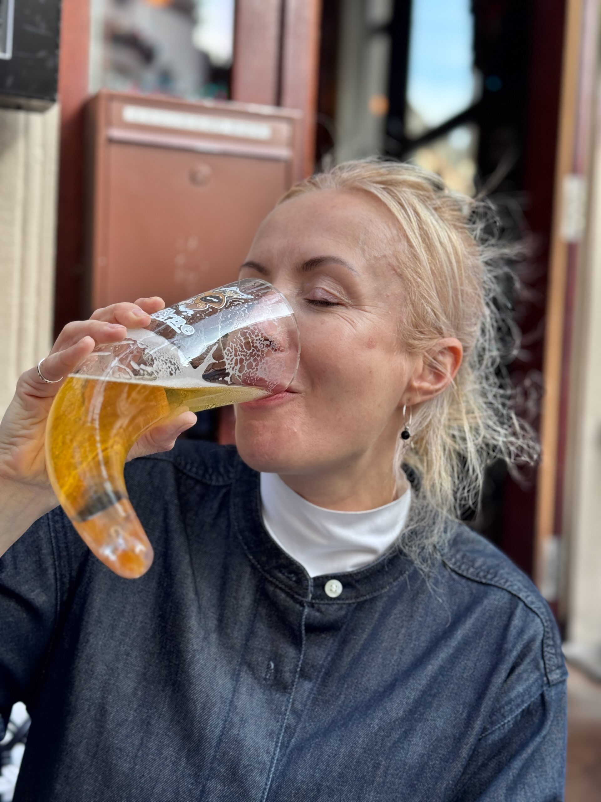 Our walk took us along a boulevard that was under construction making it both perilous and uniquely ugly. Eventually, we found a path that led us to the center with its beautiful old buildings and countless beer bars and cafes. The sun was shining, so we wanted to sit outside, and we found one small table at the Golden Hour beer bar where I hastily ordered a meter of Belgian Beers to taste.